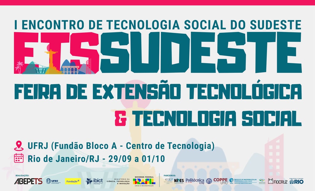 O I Encontro de Tecnologia Social da Região Sudeste (ETS-Sudeste) é uma iniciativa que busca consolidar espaços de articulação e debate sobre a tecnologia social. O evento é um ponto de encontro para pesquisadores(as), representantes de movimentos sociais, gestores(as) públicos(as) e estudantes que estão comprometidos com a construção de um desenvolvimento mais justo e inclusivo.