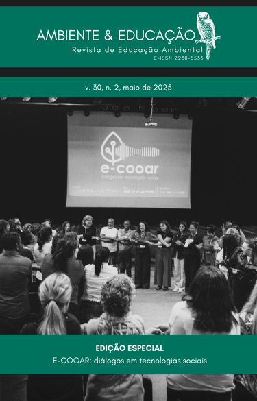 A revista Ambiente & Educação: Revista de Educação Ambiental acaba de lançar a edição especial v. 30, n. 2 (2025) – E-Cooar: Diálogos em Tecnologias Sociais. A publicação reúne trabalhos produzidos e debatidos durante o Encontro de Tecnologia Social da Região Sul (ETS Sul), realizado entre 23 e 25 de abril de 2025, na cidade de Rio Grande/RS.